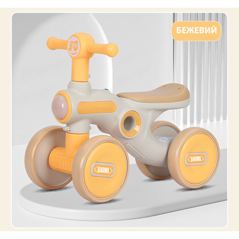 Чотириколісний велобіг QW-F8 з музикою й підсвіткою, від 1 до 5 років, до 30 кг, пластиковий, колеса 6 дюймів Бежевий