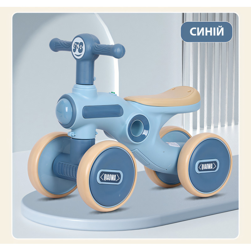 Чотириколісний велобіг QW-F8 з музикою й підсвіткою, від 1 до 5 років, до 30 кг, пластиковий, колеса 6 дюймів Синій