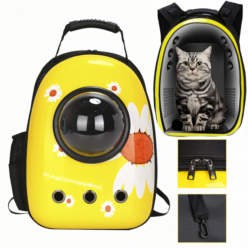 Рюкзак-перенесення CosmoPet у сонячному жовтому кольорі з візерунком ромашок — це зручний та безпечний спосіб транспортування домашніх тварин. Він стане незамінним помічником під час поїздки до ветеринара, подорожі чи звичайної прогулянки. Жорсткий каркас із ABS-пластику та полікарбонату надійно захищає улюбленця від ударів, а міцна тканина оксфорд забезпечує довговічність та стійкість до зношування.