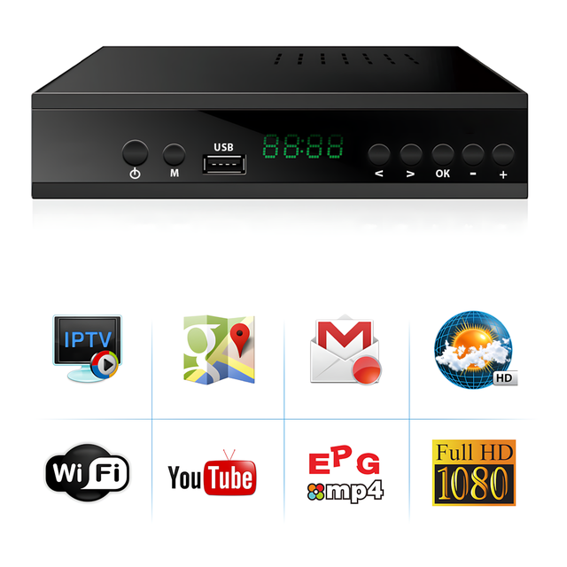 YASIN T8000 — це сучасна цифрова ТВ-приставка стандарту DVB-T2, призначена для приймання ефірного телебачення + відтворення мультимедійних файлів. Підходить для під'єднання до будь-якого телевізора — від старих моделей до сучасних.