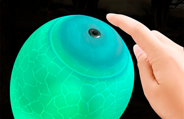 Світильник динозавр зробить приємну та затишну атмосферу в кімнаті Вашої дитини. Пристрій працює від акумулятора, час роботи якого вистачить на 10-20 годин залежно від режиму робота. Нічник має м'яке, затишне світіння, яке сприятливо впливає на засинання дитини. Девайс має широкий спектр кольору, які регулюється або за допомогою торкання шкаралупою або за допомогою пульта дистанційного керування. Цей аксесуар буде гарним подарунком для близьких і друзів.