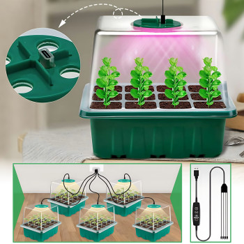 Набір для вирощування розсади MA731, 5 контейнерів із прозорими кришками, LED-підсвітка, вентиляційн..