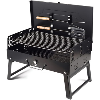 Складаний портативний мангал Supretto CA-07 з ніжками, решіткою, лопаткою та вилкою для барбекю, 43×..