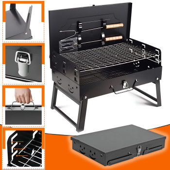 Складаний BBQ-гриль Mensory Grill Portable, 35 см довжина, неіржавка сталь, чорний