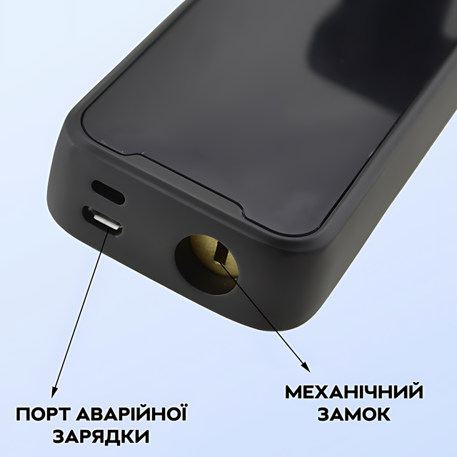 - Автономне живлення: Замок працює від 4 батарейок типу AAA, попереджаючи власника про низький заряд. За потреби можна під'єднати резервне живлення через micro USB;
