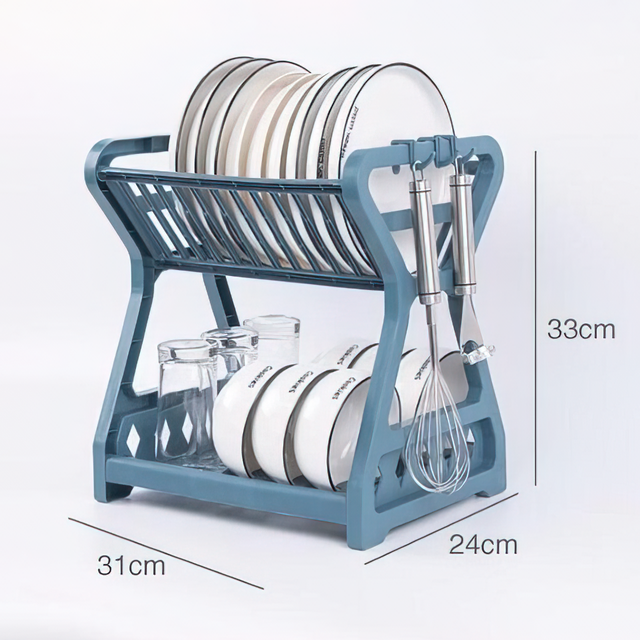 Дворівнева кухонна сушарка для посуду XL-157 з гачками, органайзер для раковини