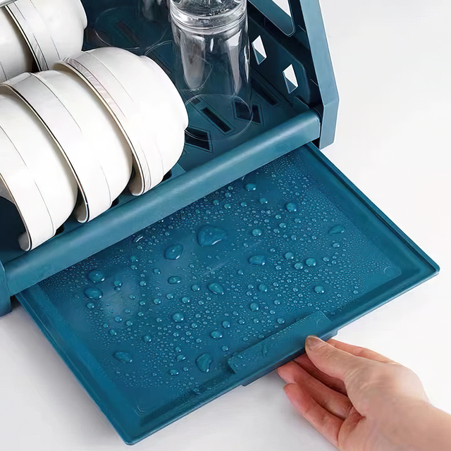 - Зручний піддон для стікання води: висувний піддон посуду для стікання води допомагає зберегти стільницю сухою. Це робить використання сушіння зручнішим і гігієнічнішим.
