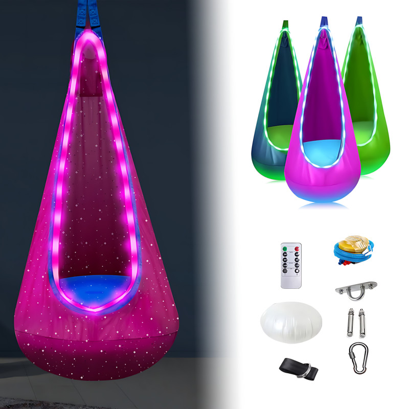 Це не крісло! Це кокон спокою. У якому дитина може читати, грати, мріяти, розгойдуватися. Або ж просто залипати в м'якому світлі LED-підсвітки.