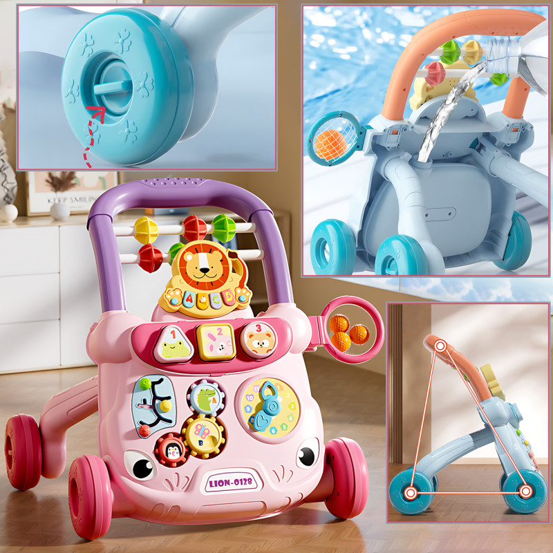 Багатофункціональні ходунки MA570 допомагають дитині робити перші кроки та розвивають моторику, слух і координацію. Вони поєднують тренажер для ніг, навчальні панелі та музичний блок з елементами сортеру.