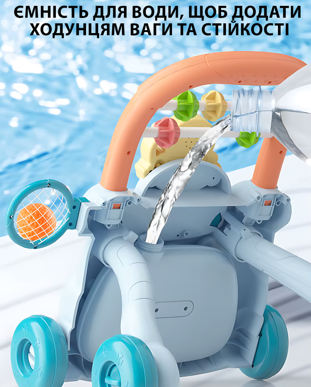 - ???? 8-в-1: ходунки, музичний центр, піаніно, сортер, лабіринт, годинник для м'яча, тренажер.