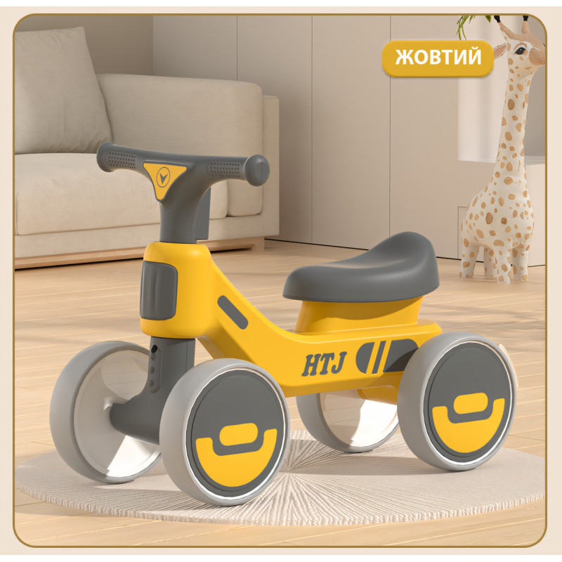 Дитячий балансувальний велобіг 602 для дітей від 1 до 5 років, з музикою й підсвіткою, 1.5 кг, пластик і піна Жовтий