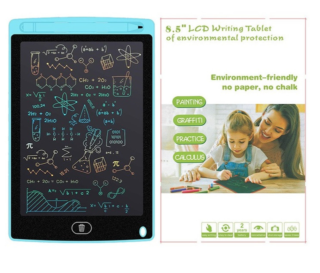 це сучасний і зручний спосіб малювати та записувати тексти без паперу та письмового приладдя. Дитячий планшет для малювання з рідкокристалічним екраном 8.5 дюйма виготовлена в сучасному та мінімалістичному стилі планшета.