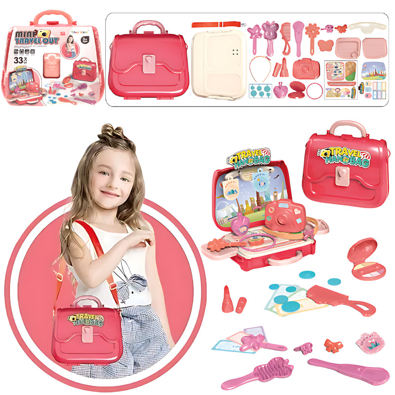 Дитячий косметичний набір Mini Travel Out — це захопливий і стильний комплект, створений для маленьких модниць, які люблять експериментувати з зовнішністю та створювати власні яскраві образи. Набір містить 33 аксесуари, як-от щіточки, гребені, блискучі прикраси та навіть пов'язку на голову, що робить гру особливо цікавою. Завдяки міцній валізці, набір зручно брати із собою в подорожі або на прогулянки, що дасть змогу дитині завжди мати свої "скарби" під рукою.