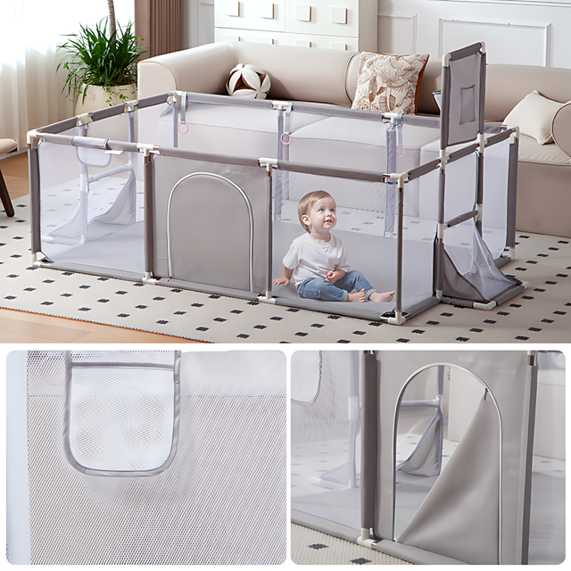 - Сітчасті стінки — видно дитину з усіх боків, повітря циркулює, малюкові комфортно.