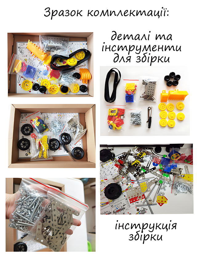- 8 унікальних моделей: Конструктор містить 8 різновидів техніки, що стимулює цікавість до конструювання та розвитку нових ідей;