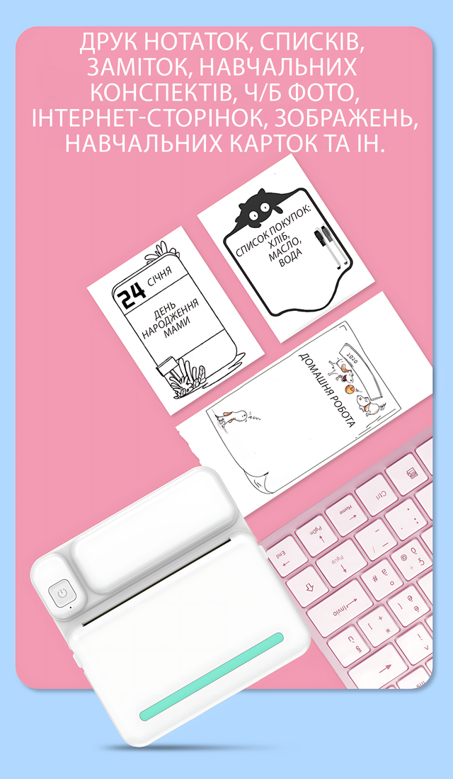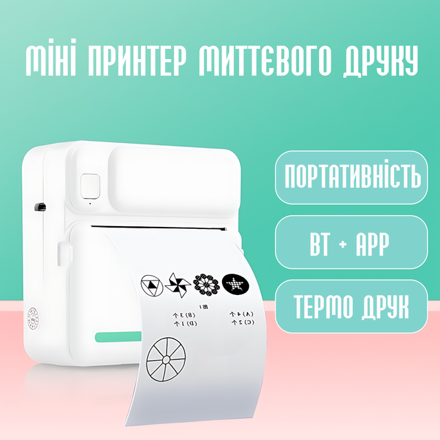 - ✔ Без чорнила! — термодрук, жодних картриджів