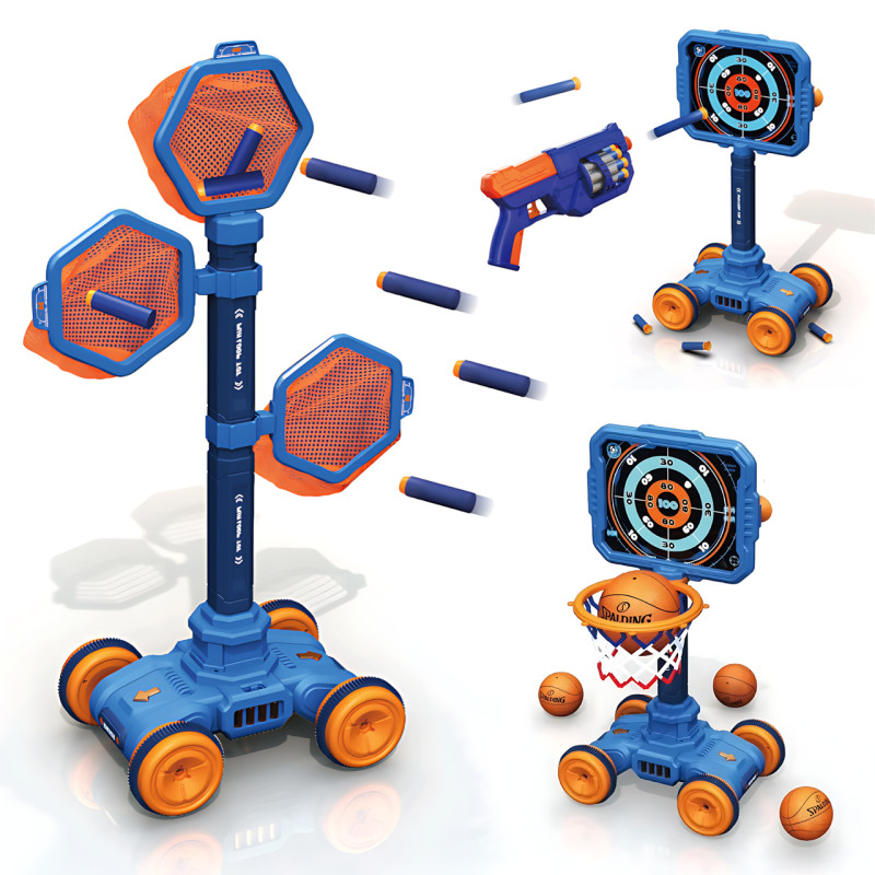 Дитячий тир 3-в-1 (801-17): баскетбол + іграшковий пістолет з м'якими кулями + мобільна мішень, світло/звук, від 3 років