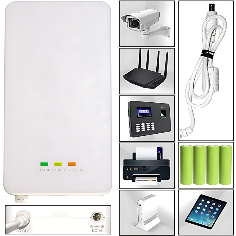 МініUPS BBU15-DT — це малогабаритний пристрій, призначений для забезпечення безперебійного живлення роутерів, камер спостереження та інших ґаджетів із напругою 12 В у разі, якщо немає електромережі. Має вхід для 4 батарейок типу AA і роз'єм постійного струму для під'єднання зовнішнього джерела живлення. У разі збою в системі енергопостачання перемикається на живлення від акумуляторів.
