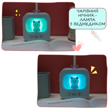Настільна лампа "Ведмедик", нічник із сенсорним керуванням акумулятором, гнучкою стійкою і 3 режим..