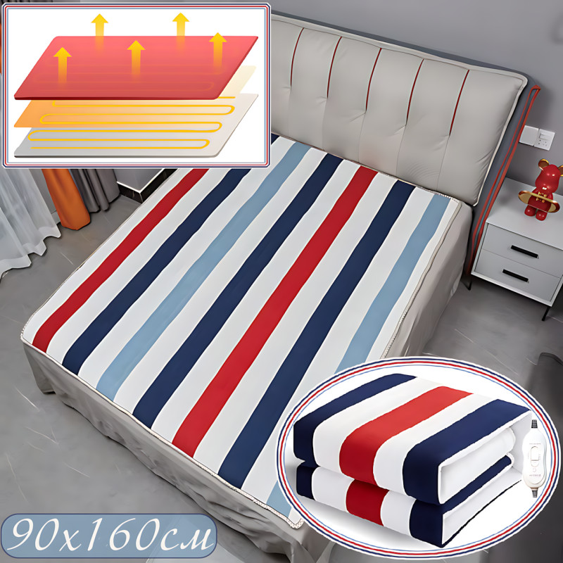Електро простирадло YASAM 90х160, односпальна електро ковдра з підігрівом і пультом керування, кольорова смужка