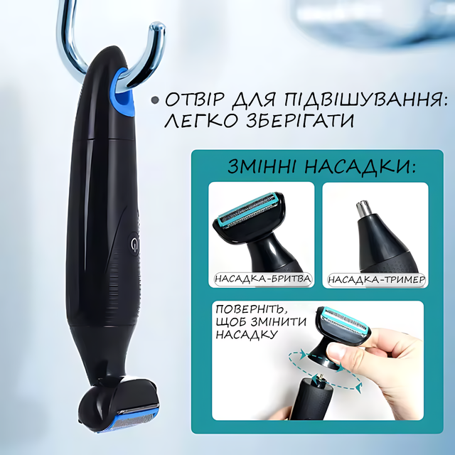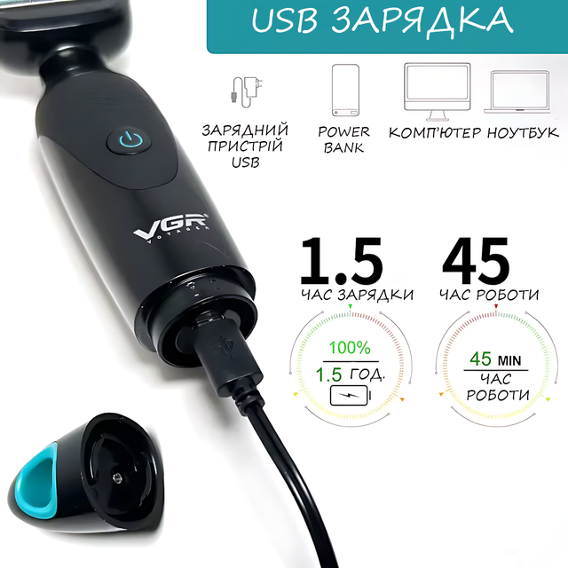 Електробритва 2 в 1 VGR V601 з тримером, акумуляторна бритва + тример для бороди, вусів, тіла, 500 мА·год, USB