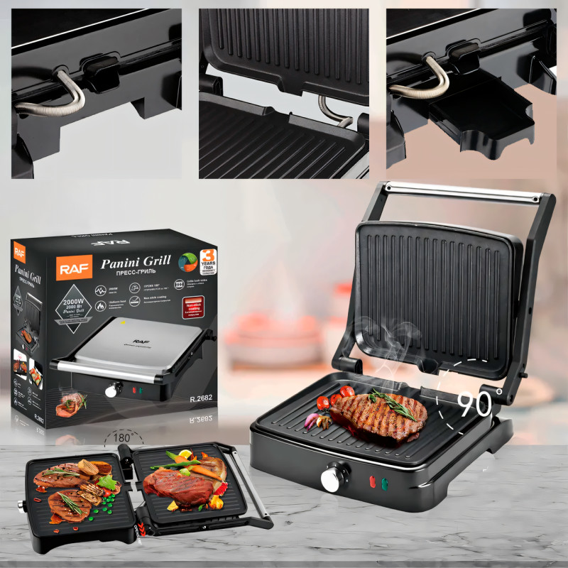 Електрогриль RAF R 2682 — чудовий вибір для тих, хто цінує зручність, функціональність і якість в одному пристрої. Створюйте смачні блюта без зайвих зусиль і насолоджуйтеся чудовим результатом щоразу!