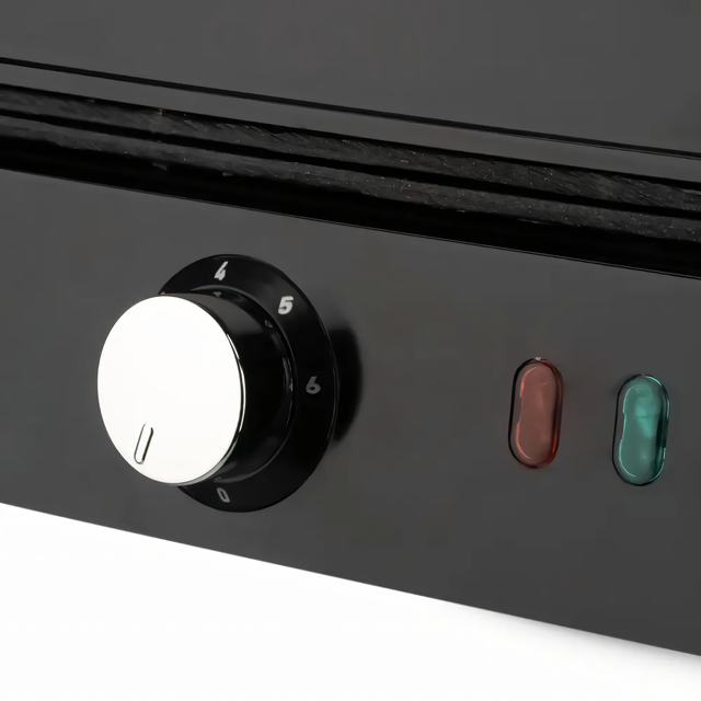 - Двостороннє приготування: Електрогриль обладнаний двома нагрівальними елементами, що дає змогу готувати продукти одночасно з двох сторін. Це забезпечує рівномірне просмажування та збереження соковитості вашої їжі;