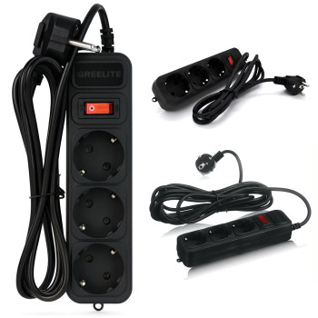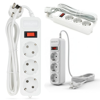 Мережевий фільтр GRELITE SP3, подовжувач на 3 розетки з вимикачем, 1.8 м, 2500 Вт, із заземленням, з..