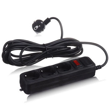 Подовжувач AR CP02 3 розетки + 6 USB, 2 м, 3000 Вт, із захистом і вимикачем, чорний
