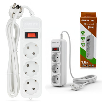 Мережевий фільтр GRELITE SP3, подовжувач на 3 розетки з вимикачем, 1.8 м, 2500 Вт, із заземленням, з..