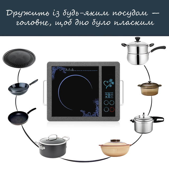 - ✅ Дружить із будь-яким посудом — головне, щоб дно було плоским.