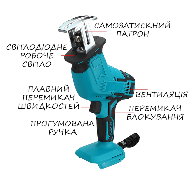 Електропила шабельна LITHIUM з 2 акумуляторами 24 V, лобзик 3500 об./хв у валізі з 4 насадками та підсвіткою