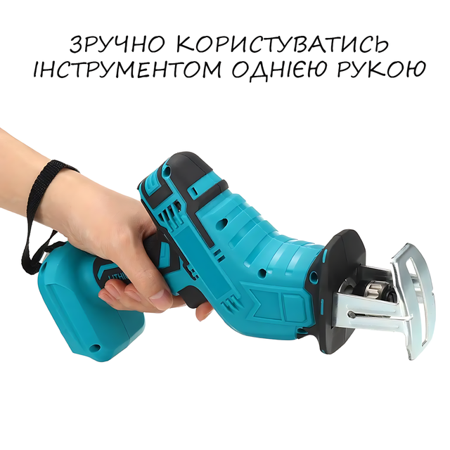 Акумуляторна шабельна пила забезпечує високу продуктивність і зручність роботи на одному заряді.