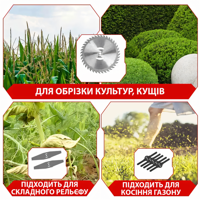- Потужна сила: Газонокосарка працює без заклинювання та забезпечує легке косіння на великих площах;