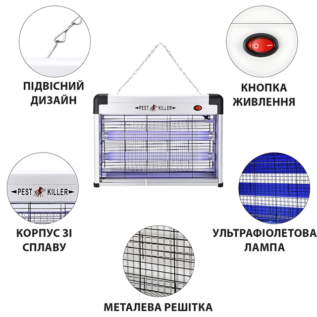 Pest Killer ZCTT-L30 — це справжня пастка для шкідників, що літають. Потужні дві УФ-лампи по 15 Вт (всього 30 Вт) притягують комарів, мух, мошок і навіть ос. А електрична сітка всередині — миттєво й безшумно нейтралізує "гості".