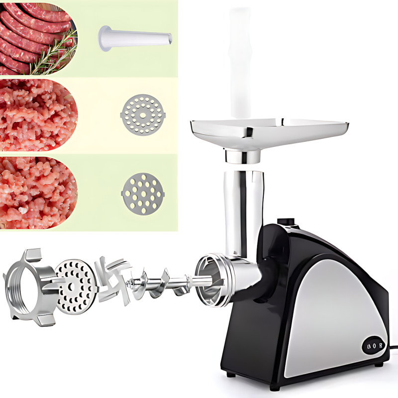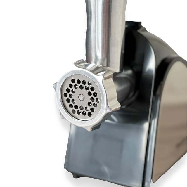 - Висока потужність (3000 Вт): Завдяки високій потужності м'ясорубка легко справляється з переробленням навіть твердих і волокнистих продуктів, як-от м'ясо з жилами або хрящами. Це забезпечує швидку та ефективну роботу пристрою;
