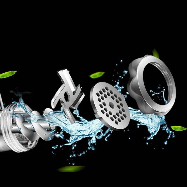 - Зручне чищення: Можливість зняти кришку, насадку, гвинт, лезо, пористу пластину та інші деталі, пов'язані з обробленням м'яса, для легкого очищення;