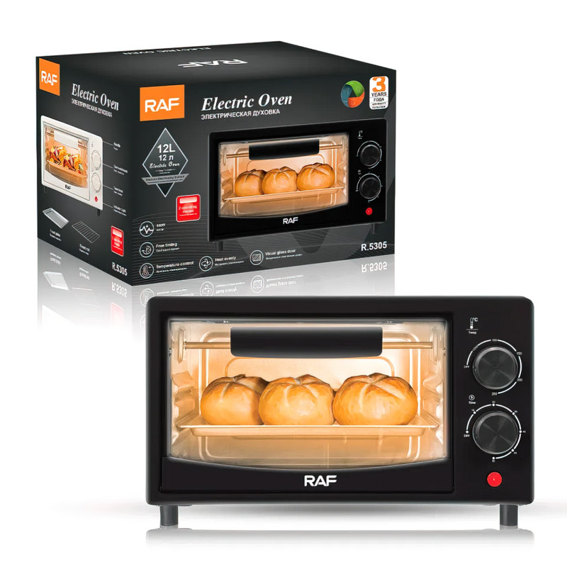 Усередині мініпечі є деко та решітка, які ідеально підходять для приготування основних страв і випічки. Два потужні нагрівальні елементи забезпечують швидке нагрівання та рівномірний розподіл жару, а регульований термостат дає змогу налаштувати потрібну температуру до 250°. Зручний вбудований таймер до 60 хвилин дає змогу контролювати процес приготування, а звуковий сигнал повідомить про готовність страви. Завдяки високій швидкості нагрівання, ви зможете швидко розігріти вже готові страви, водночас зберігаючи їхній смак і корисні властивості. Мініпіч RAF R.5305B є ідеальною альтернативою мікрохвильової печі, оскільки під час підігрівання страва не втрачає своїх корисних властивостей і залишається соковитою та смачною.