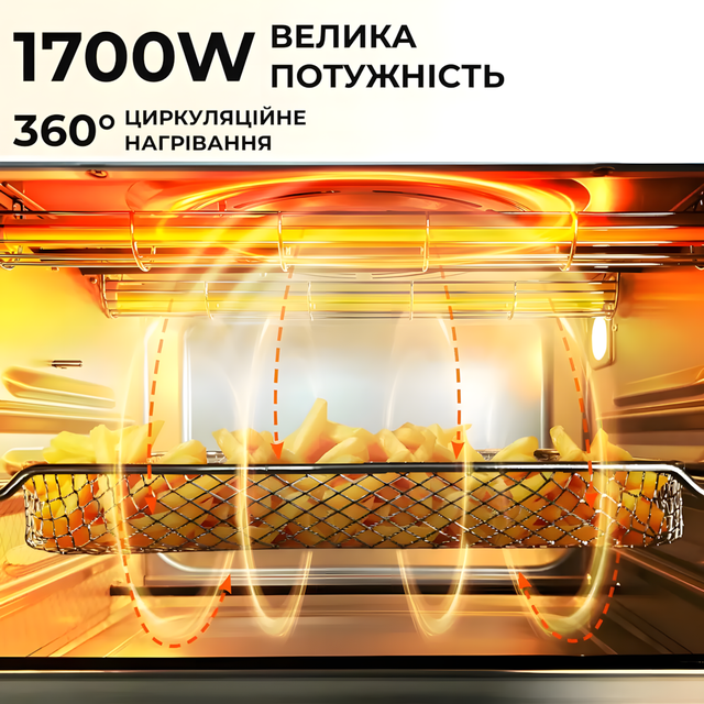 - Потужність 1700 Вт для швидкого нагрівання та рівномірного приготування.