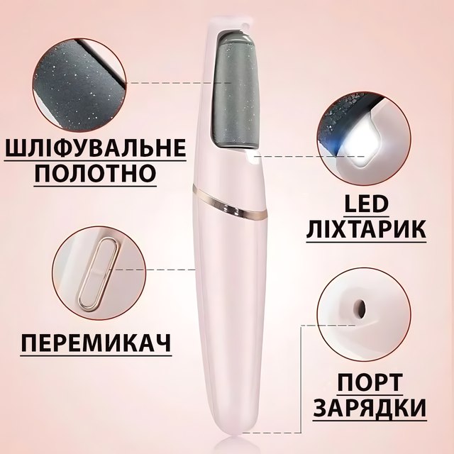 - Призначення: видалення огрубілої шкіри та мозолів;