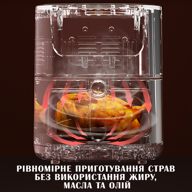 - ✅ Приготування без олії — гаряче повітря замінює традиційне смаження, знижуючи кількість жиру в їжі.
