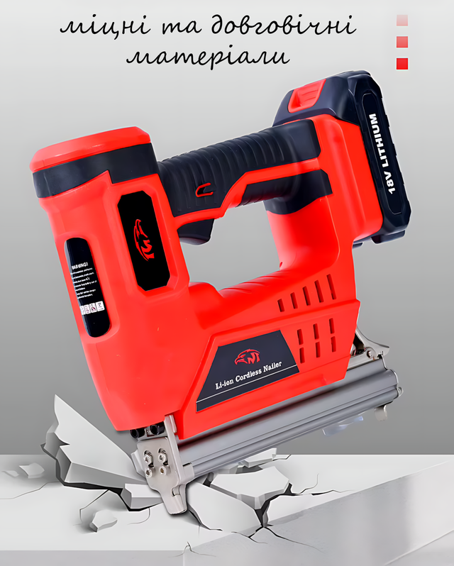 ⚡ Живиться степлер від акумулятора 18 В (2 А·год). Ні дротів, ні розеток — тільки ти й свобода. Бери його куди завгодно: у майстерню, на дачу, у гараж або на об'єкт — завжди готовий до бою.