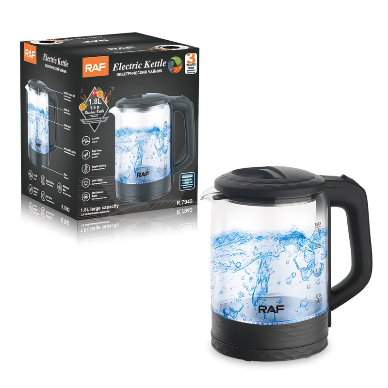 Електричний чайник RAF R.7942, скляний корпус, 1350 Вт, на 1.8 літра