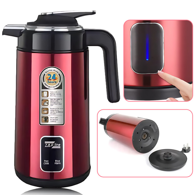 Електричний чайник-термос Zepline ZP123 — це поєднання потужності, практичності та стилю. Завдяки потужності 2200 Вт він швидко нагріває воду, а функція термоса підтримує її гарячою без потреби повторного кип'ятіння. Об'єм 3 літри робить його чудовим вибором як для сім'ї, так і для робочого колективу.