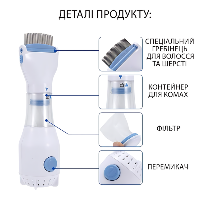 Жодних токсинів, крапель, спреїв або складних процедур. Тільки ти, твій пухнастик (або чоловічок), й електрична магія зубчиків, які подають слабкий імпульс і... миттєво вбивають бліх. Без болю. Без вреда. Без паніки.