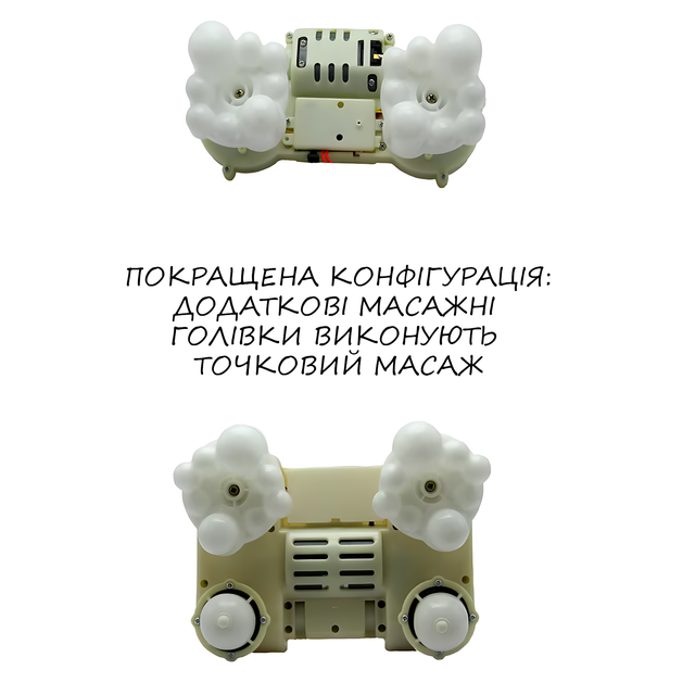 - Тип масажу: Розминальний, розслаблювальний, вібраційний, масаж гарячим компресом, імітація ручного та точкового масажу;