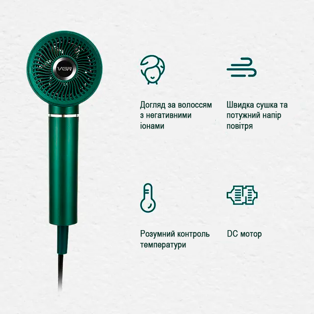 Професійний фен для укладання волосся VGR Voyager V-431 з іонізацією та подвійним захистом від перегріву, 1800 Вт