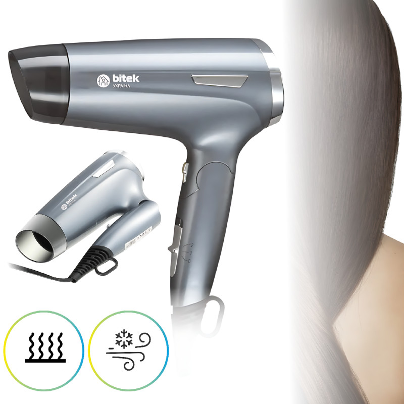 Фен для волосся BITEK BT-464, складаний дорожній фен 2400 Вт, 2 швидкості, 3 температури, холодний режим