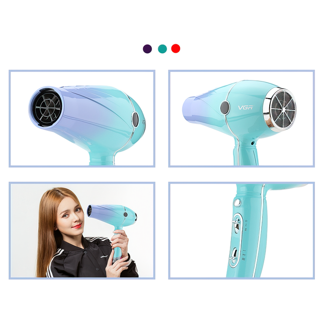 Фен VGR V-452 являє собою ідеальне рішення для тих, хто хоче, щоб його волосся мало більш доглянутий і шовковистий вигляд. Цей фен має високу потужність, тому з його допомогою укладання займе мінімум часу та зусиль. Корпус фена виготовлений із термостійкого пластику високої якості. У фені реалізована можливість регулювання трьох температурних режимів і двох швидкостей повітряного потоку, що дає змогу вибрати найбільш придатні режими роботи залежно від типу волосся й бажаного ефекту укладання. Фен піклується про стан волосся, не допускаючи його пересихання.
