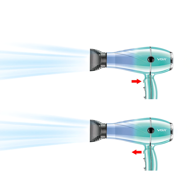 - Висока потужність фена VGR V-452 забезпечує швидке та легке укладання волосся;
